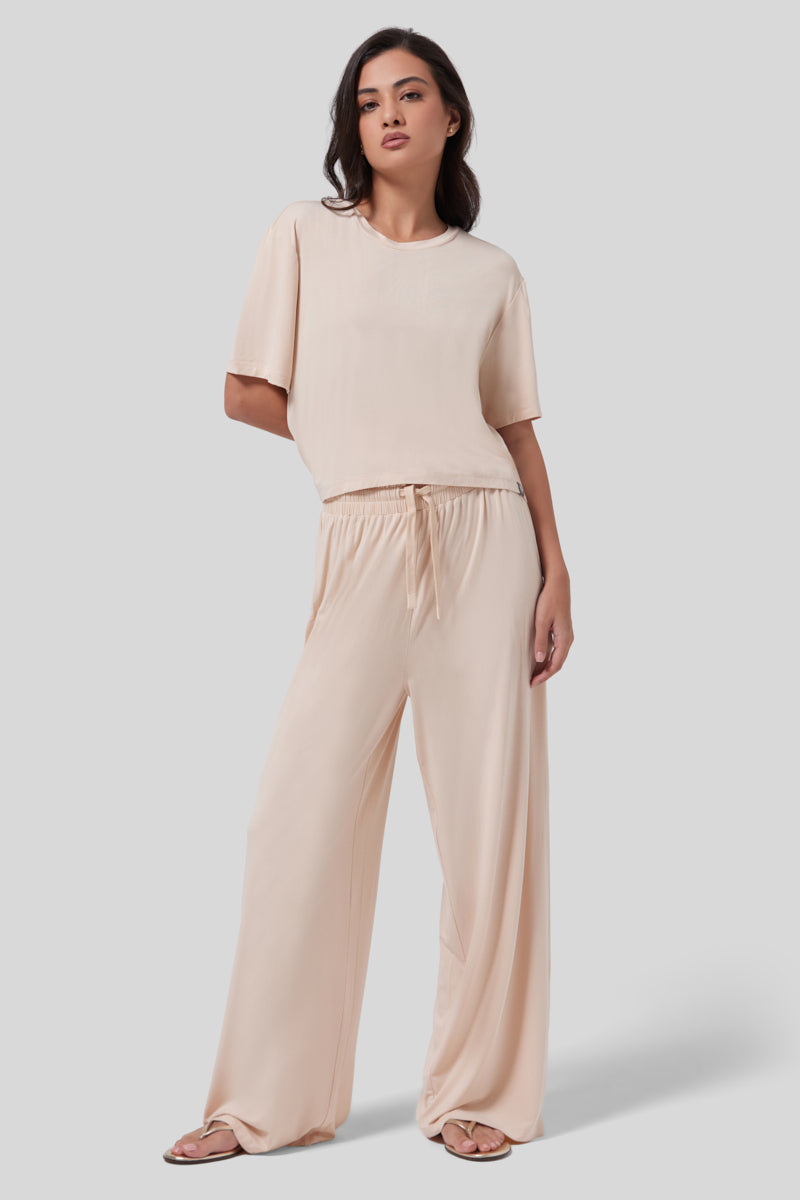 بنطلون بخصر مطاطي وخامة بامبو ناعمة، مثالي للاسترخاء وراحة تدوم طوال اليوم.
