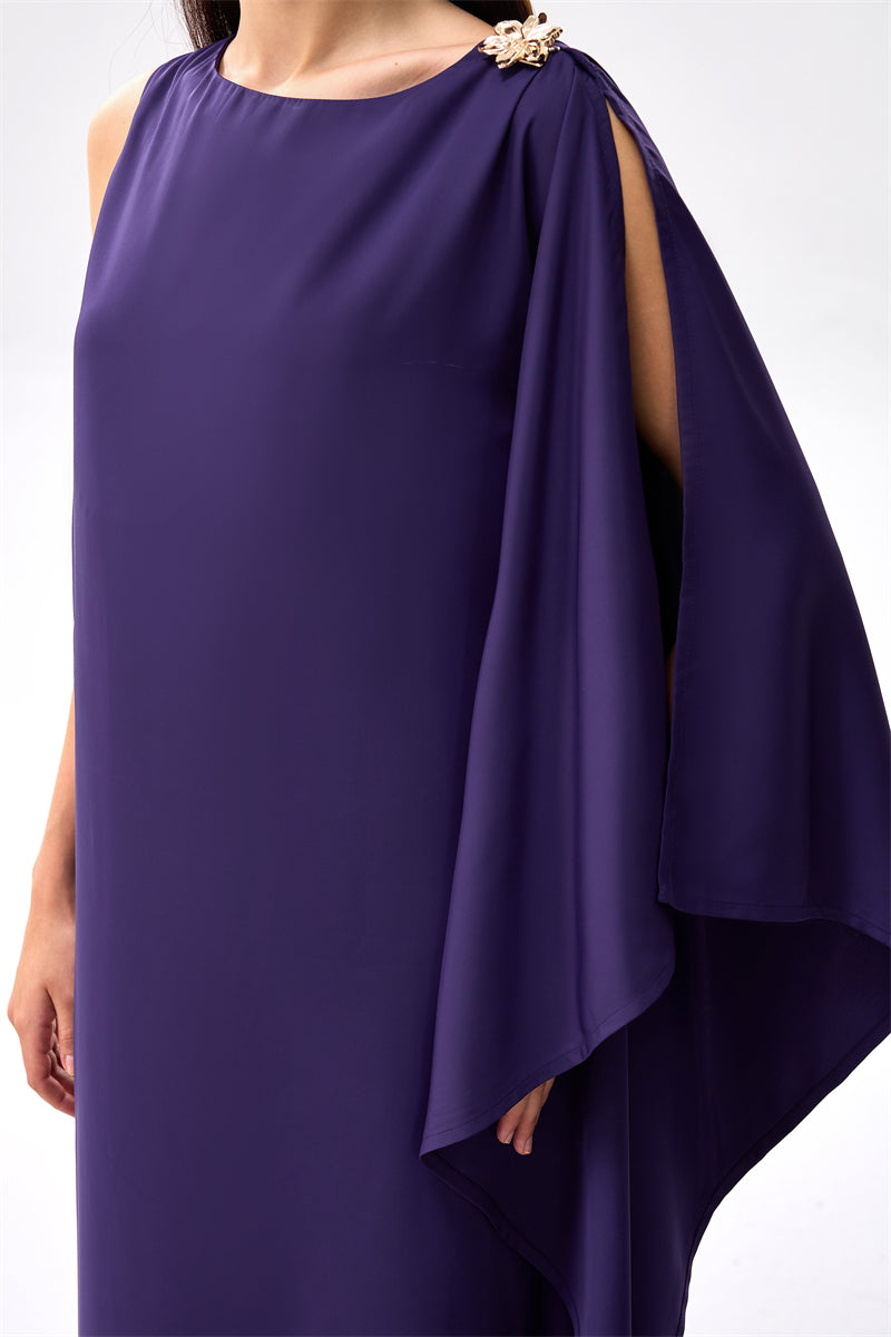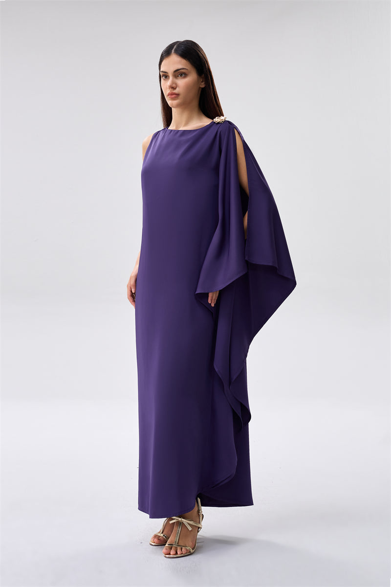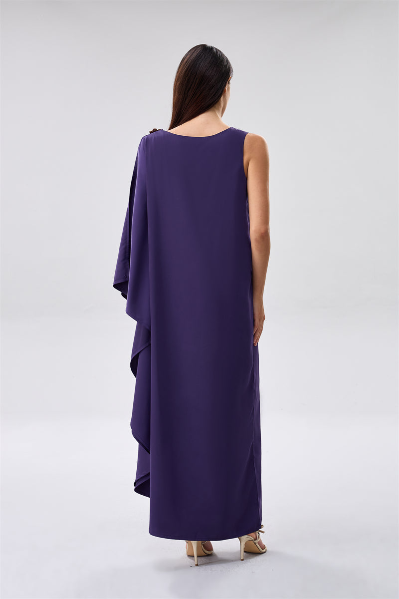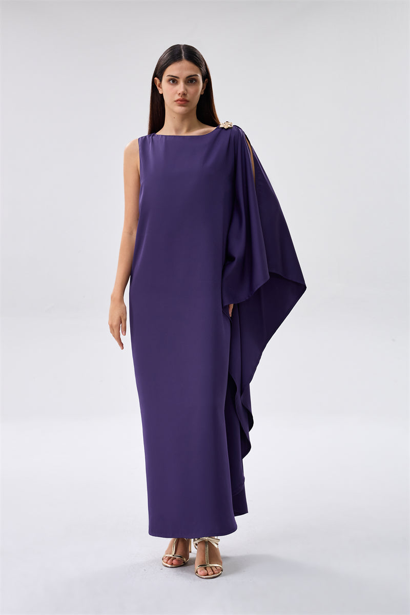 فستان طويل بتفصيل وشاح منسدل على الكتف